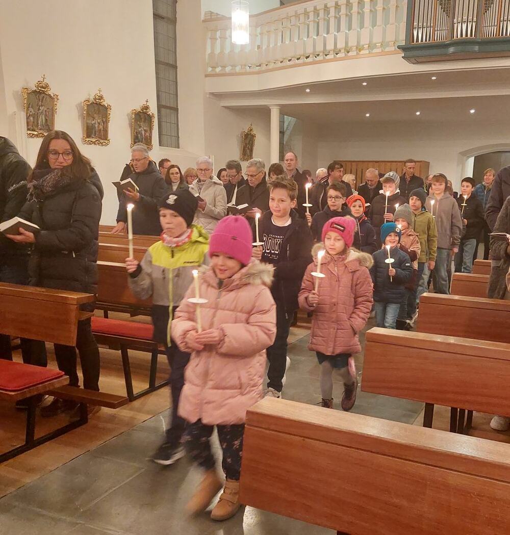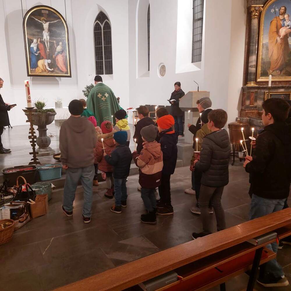 Die Kinder und Jugendlichen zogen gemeinsam mit Pfarrer Hubert in die Kirche ein, wo die mitgebrachten Kerzen gesegnet wurden. Traditionell wurde nach dem Gottesdienst der Blasiussegen gespendet.
